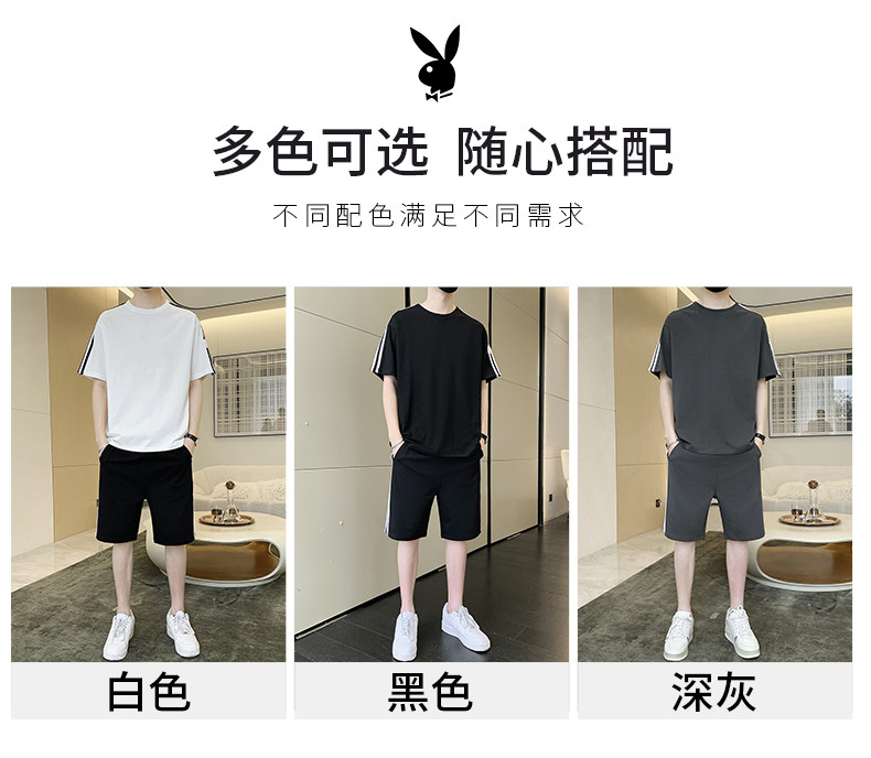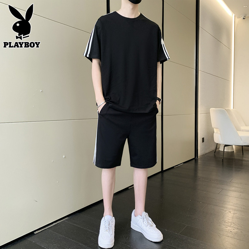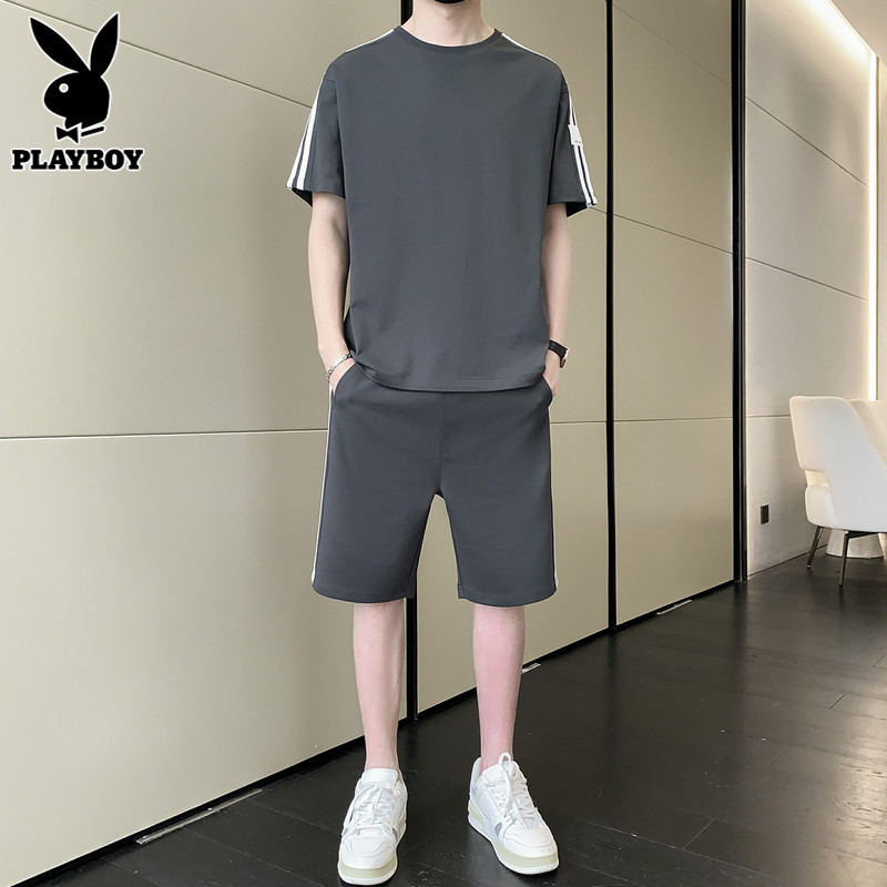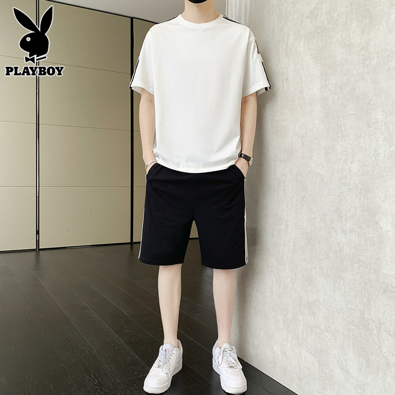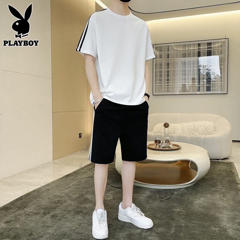 Playboy, нарукавники, мужской комплект, летний спортивный костюм, тонкая футболка, шорты, мужские штаны, короткий рукав