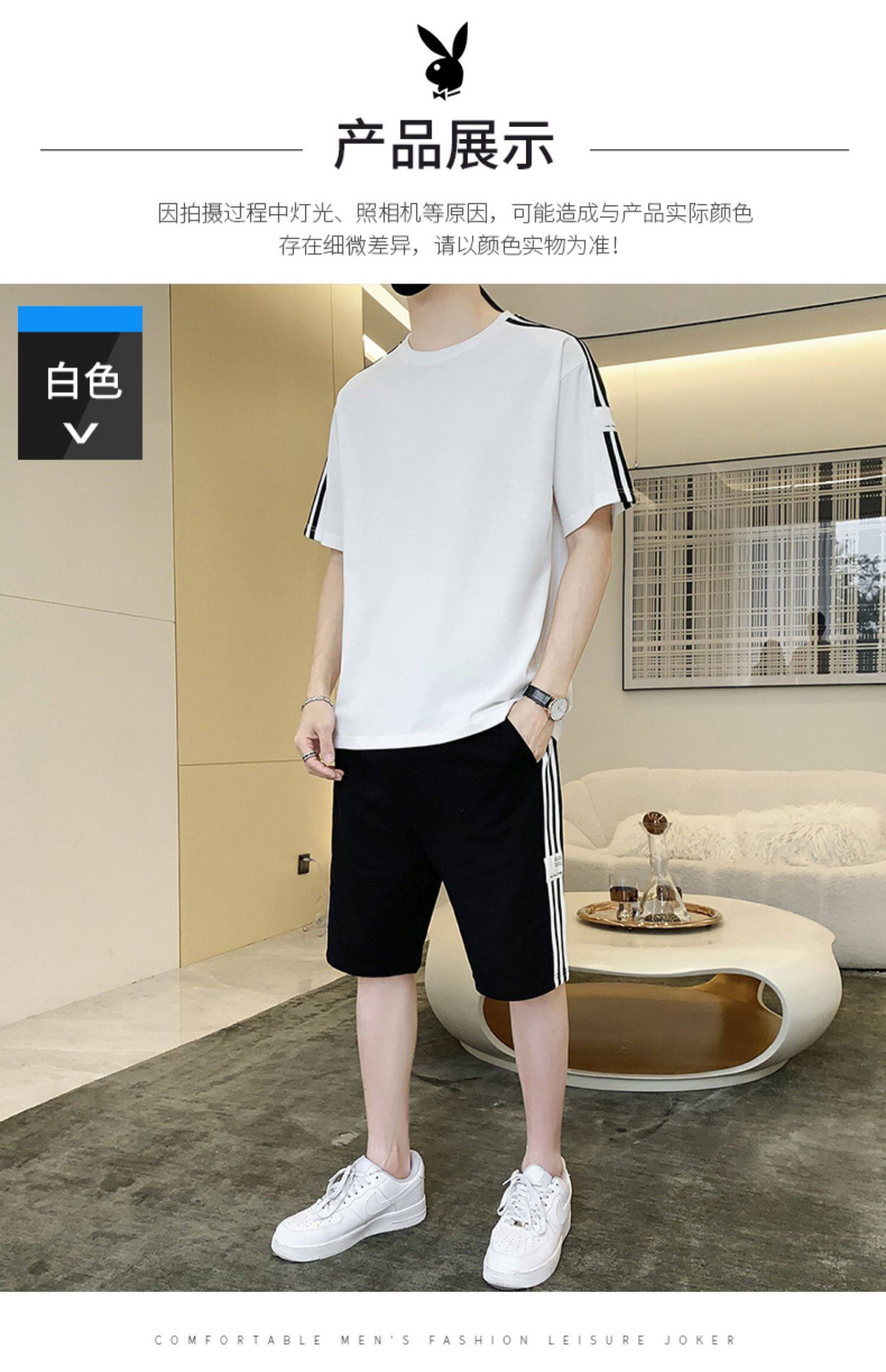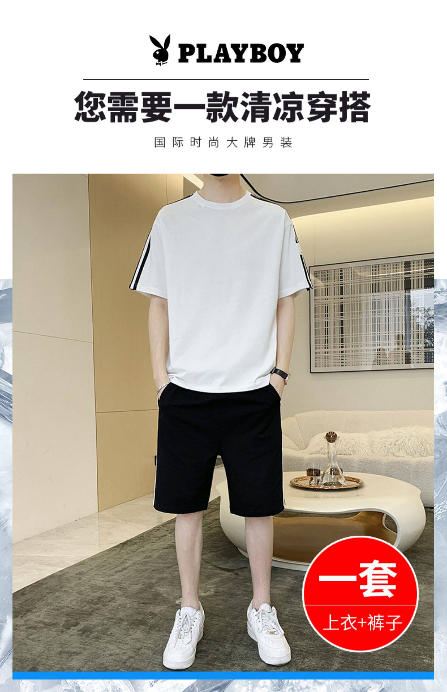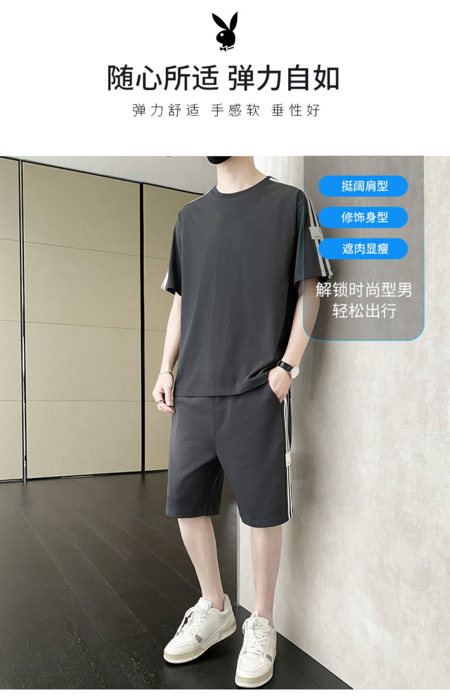 Playboy, нарукавники, мужской комплект, летний спортивный костюм, тонкая футболка, шорты, мужские штаны, короткий рукав