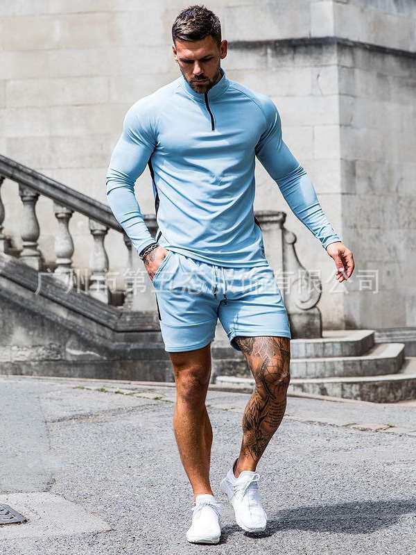 Мужской случайный светло-голубой футбольный костюм с длинным рукавом