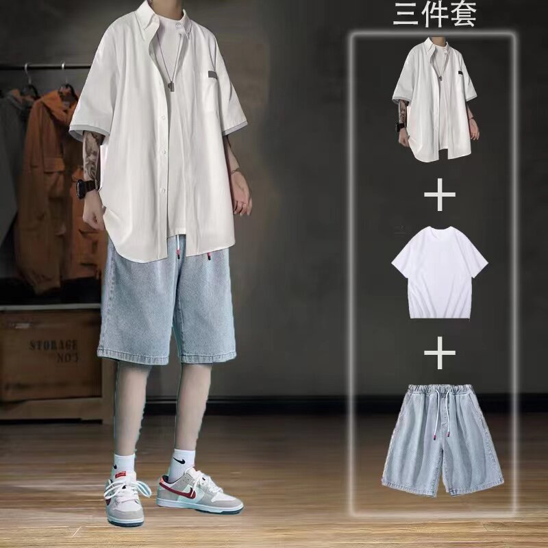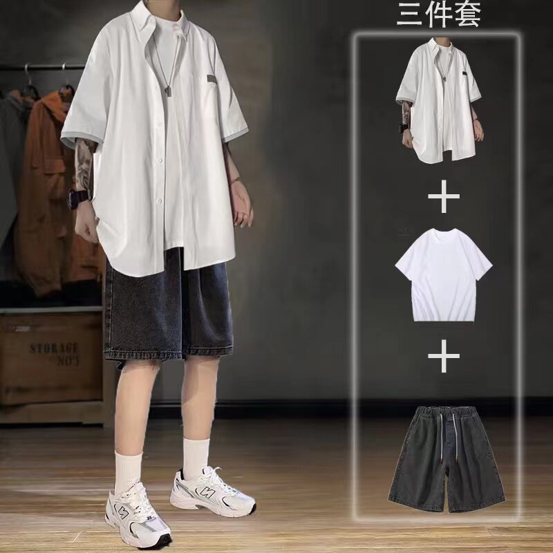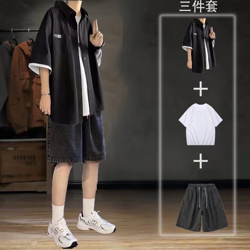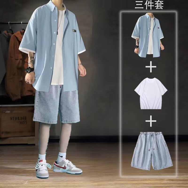 Летняя японская рубашка, ретро комплект, 3 предмета