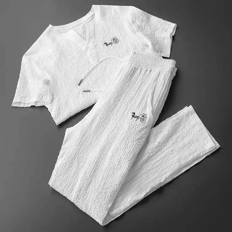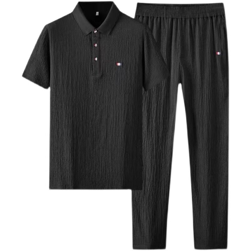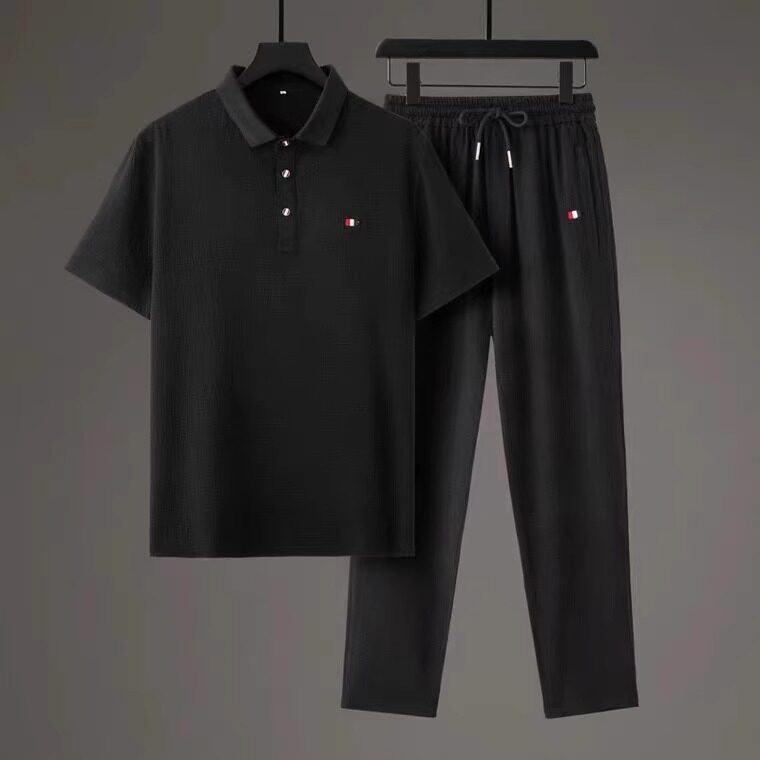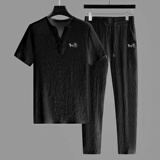 Мужской элитный летний спортивный костюм, хлопковая футболка с коротким рукавом, штаны
