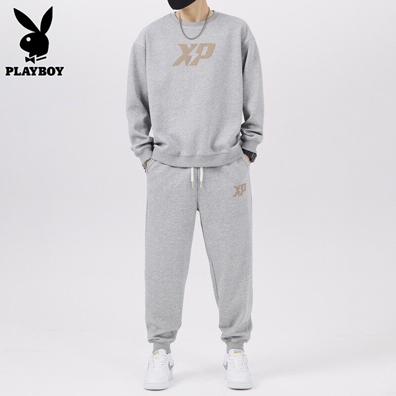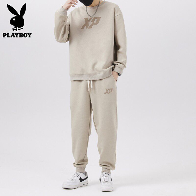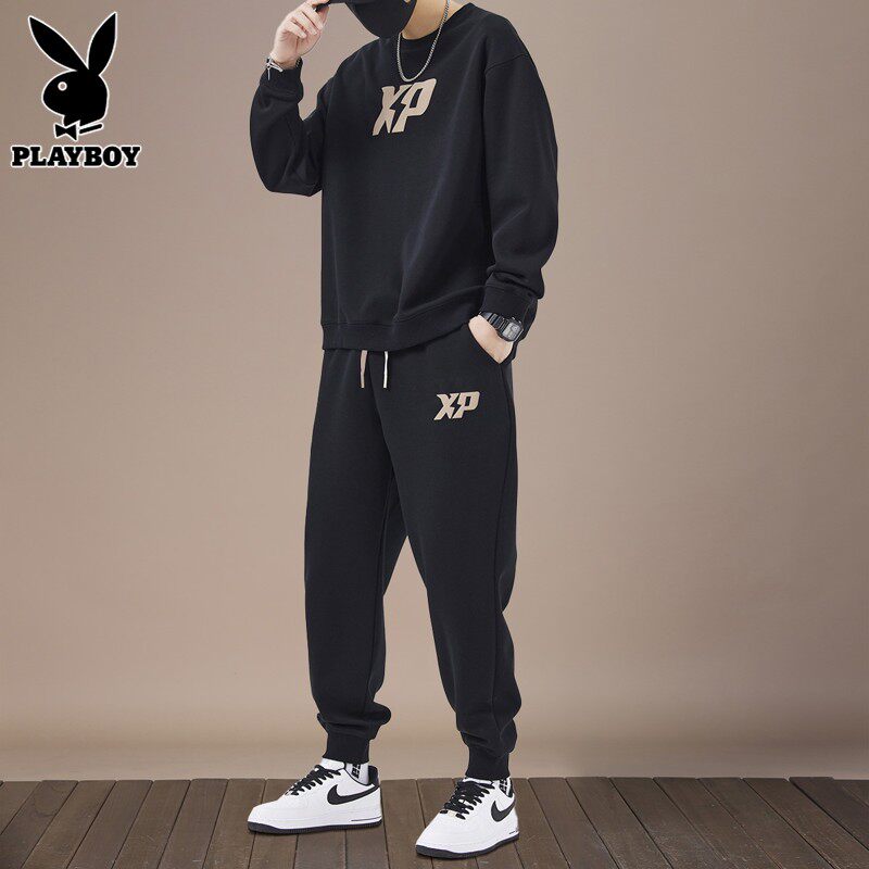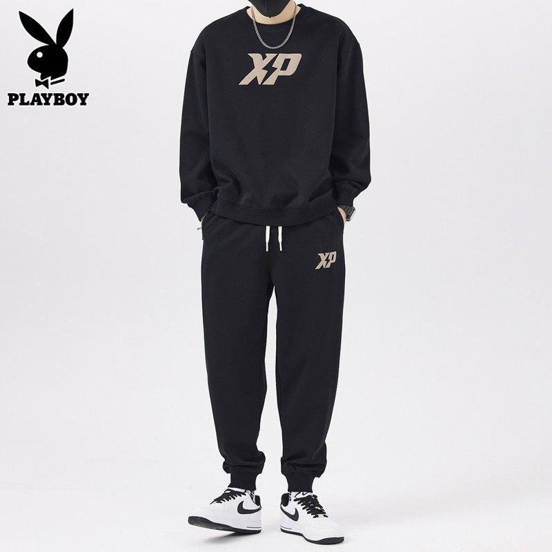 Playboy, мужской спортивный костюм, черный свитшот с круглым воротником, демисезонные повседневные брюки для отдыха, штаны