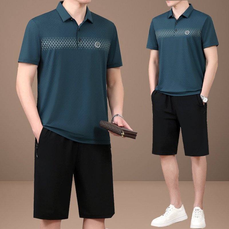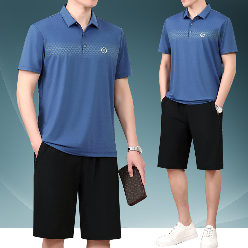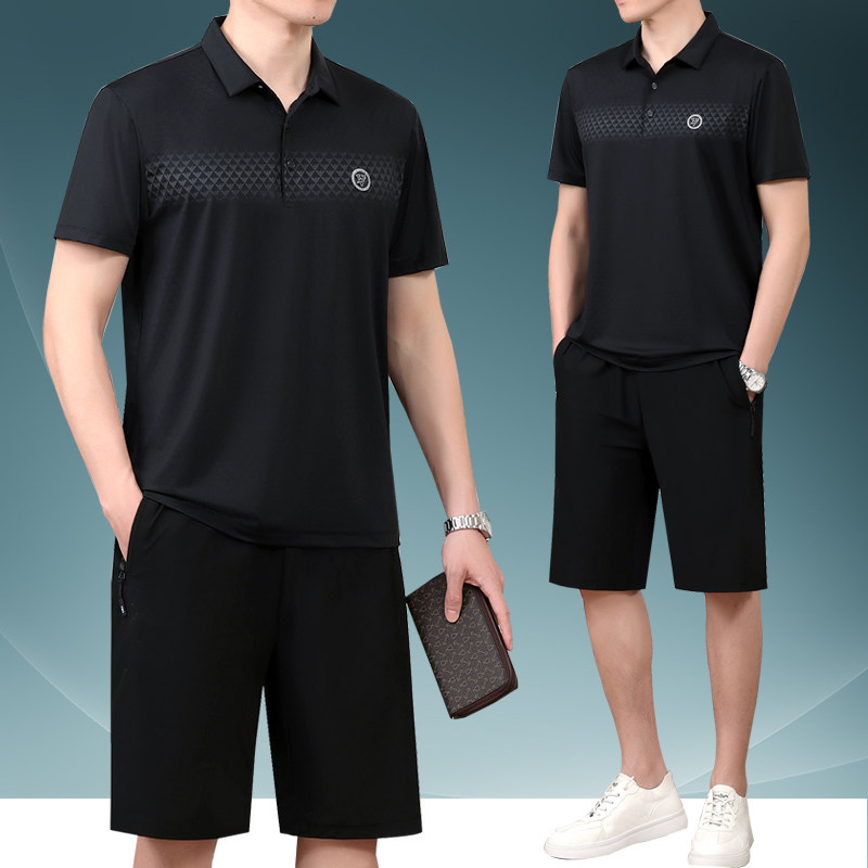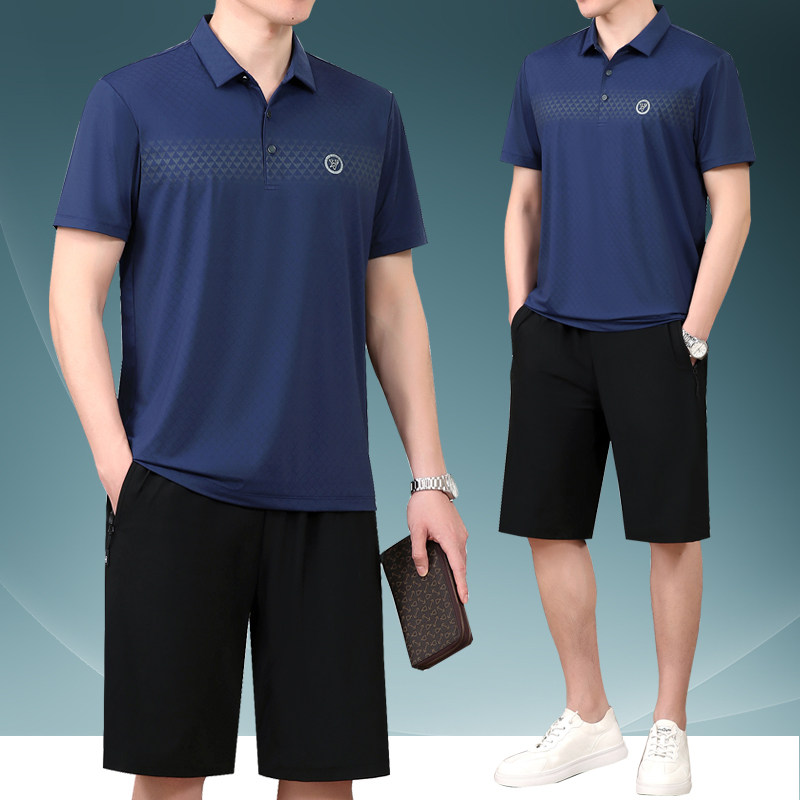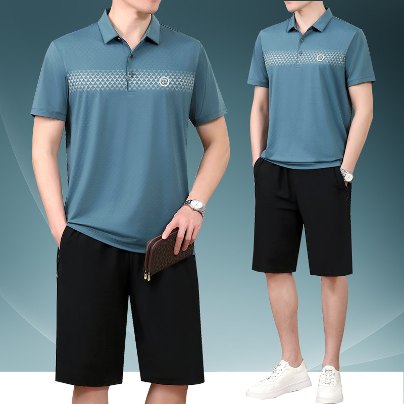 Летний шелковый комплект, мужской тонкий спортивный костюм для пожилых людей, летняя одежда, футболка с коротким рукавом, для среднего возраста