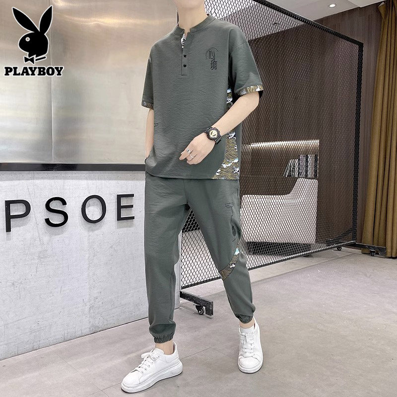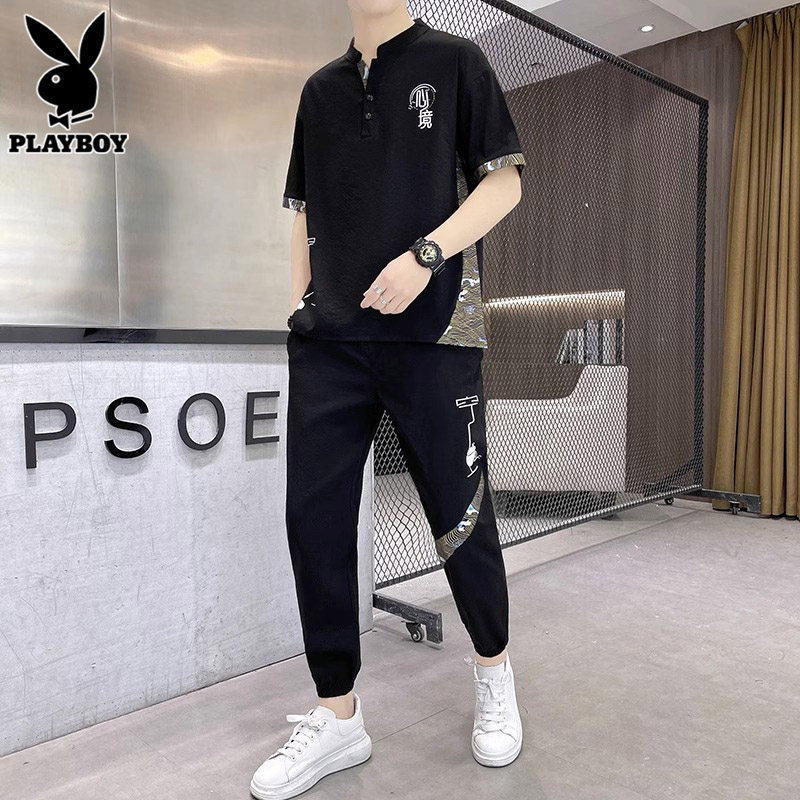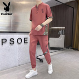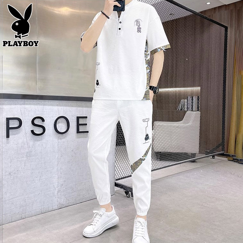 Playboy, летний трендовый комплект, шелковая футболка, спортивный костюм, китайский стиль