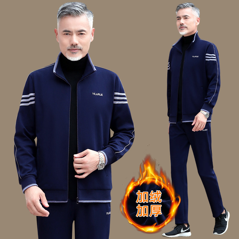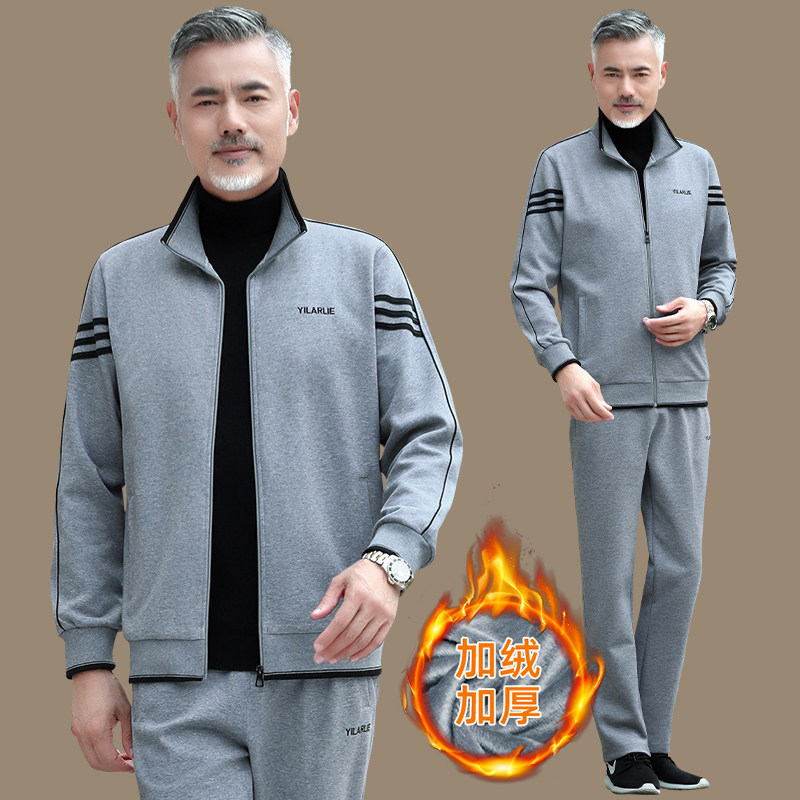 Демисезонный утепленный спортивный костюм, утепленная толстовка, комплект для пожилых людей для отдыха, 3 предмета, для среднего возраста, большой размер