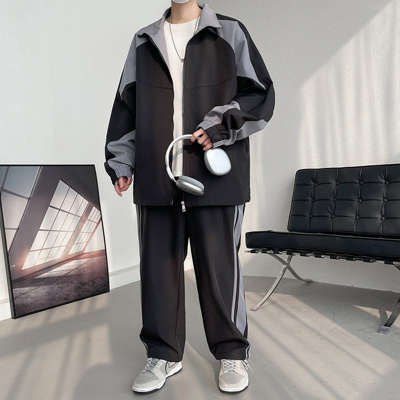 Осенний модный универсальный спортивный костюм, лонгслив, мужская куртка, комплект, классическая длина