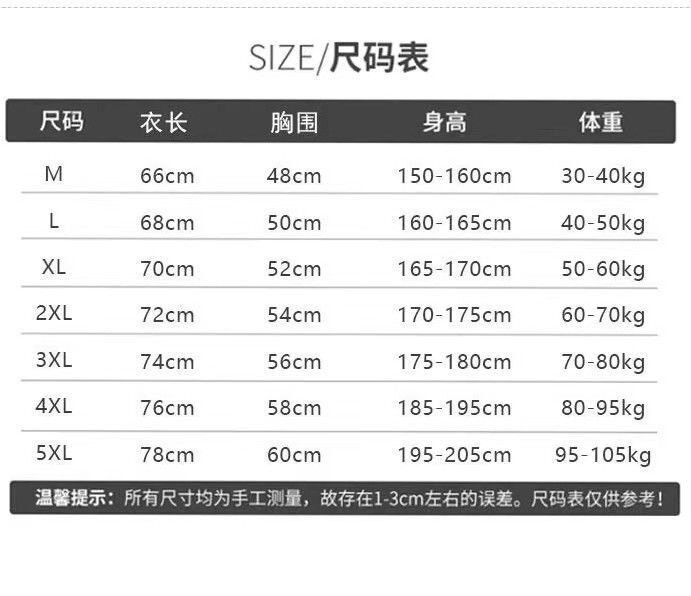 | Размер: | М [рекомендуется около 75–110 фунтов], L [Предложение около 100-130 кот]], XL [предложение 120-150 Catties], 2XL [рекомендуется около 130–160 фунтов], 3XL [рекомендуется около 130–160 фунтов], 4xl [предложение 160-180 Catties], 5xl 【Предложение 180-200 котт】 |