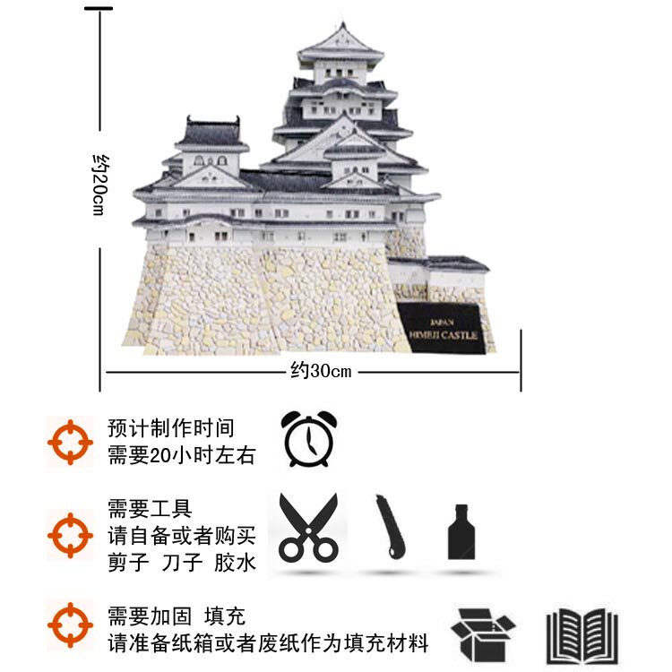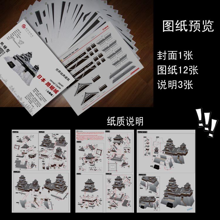 Всемирная архитектура Япония Jilu City Paper Model 3d Трехмерный рисунок ручной работы, моделирование модели Paper Art Operation