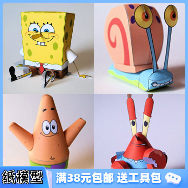 Бесплатная доставка Губка Боб послал Big Star Octopus Brother Little Crab Boss Boss 3D Paper Model Diy