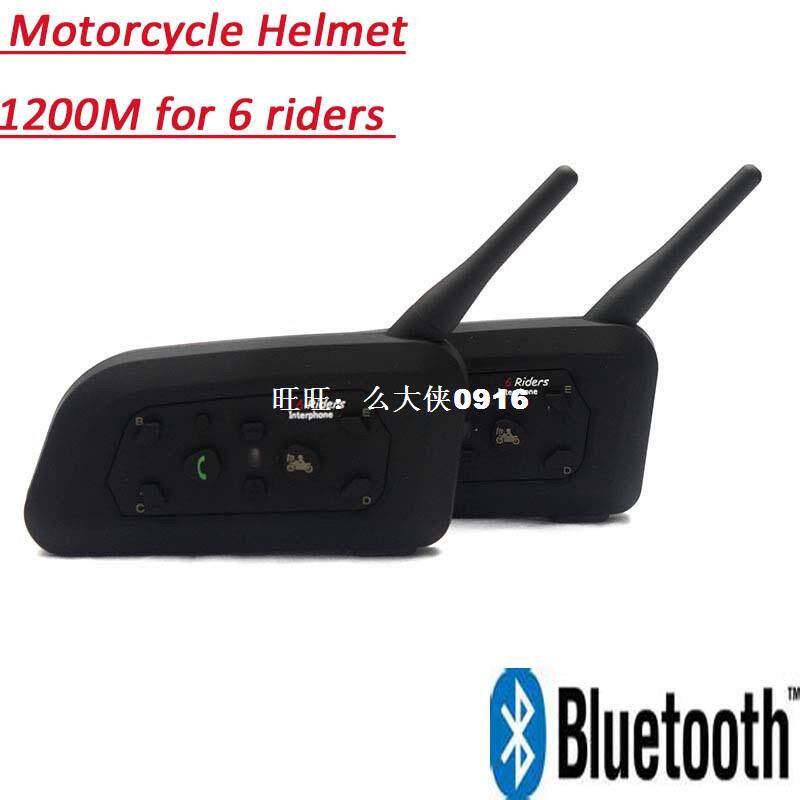 Новейший 1200 -метровый мотоциклетный шлем Bluetooth Hearset Interphone для 6 гонщиков2pcs/lot