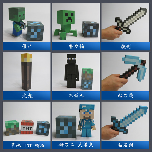 Аниме -мультфильм, мой мировой кирпич, каменный выбор, Железный По, я боюсь, что зомби -блочная стерео бумажная модель DIY ручной работы ручной работы