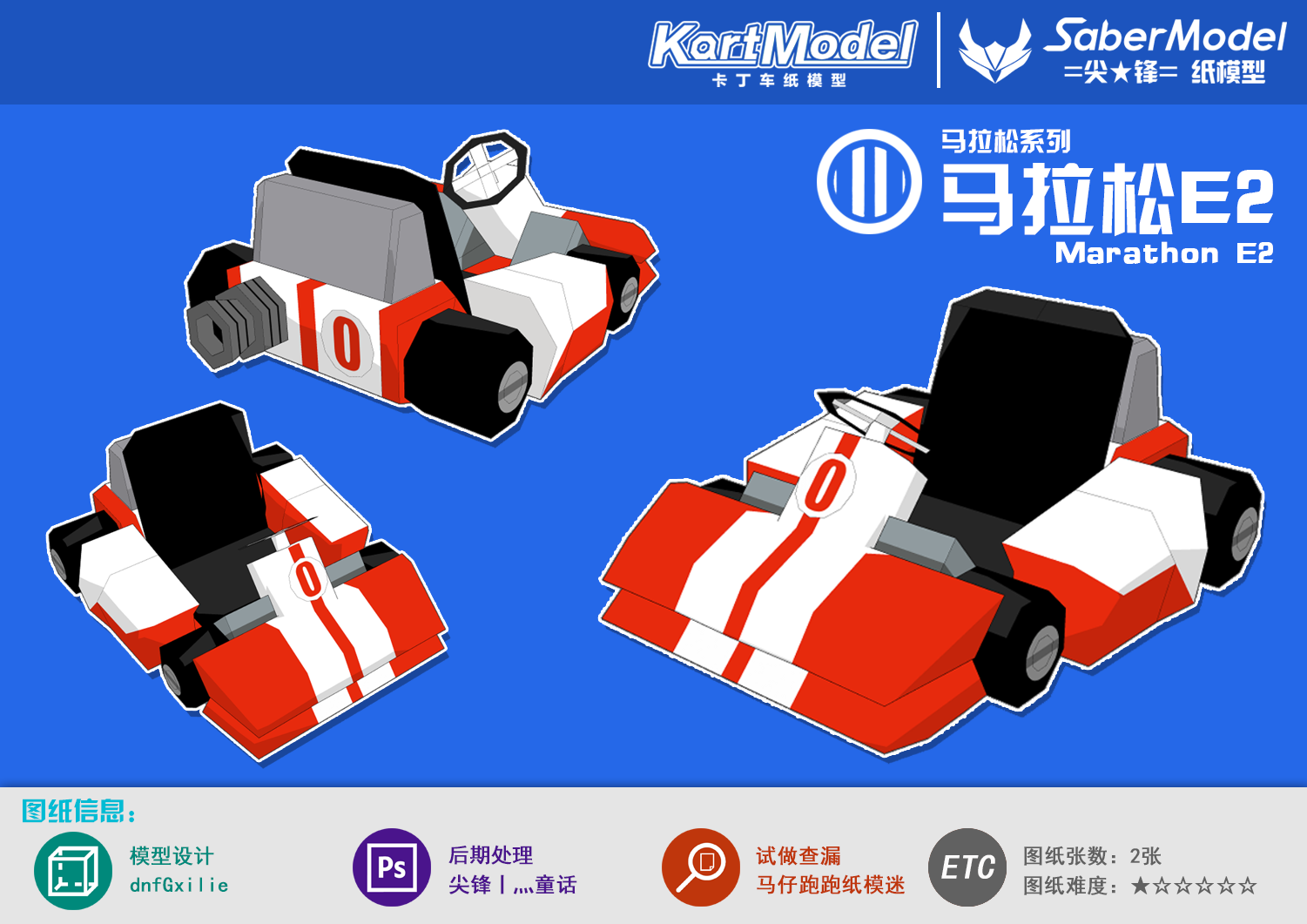 [Kartmodel] Запуск карт -марафона E2 Оригинальная 3D -бумажная модель Руководство DIY DIY