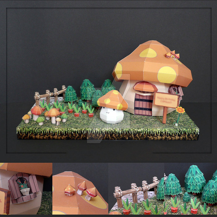 Настольный грибной домик с грибочками-гвоздиками, DIY