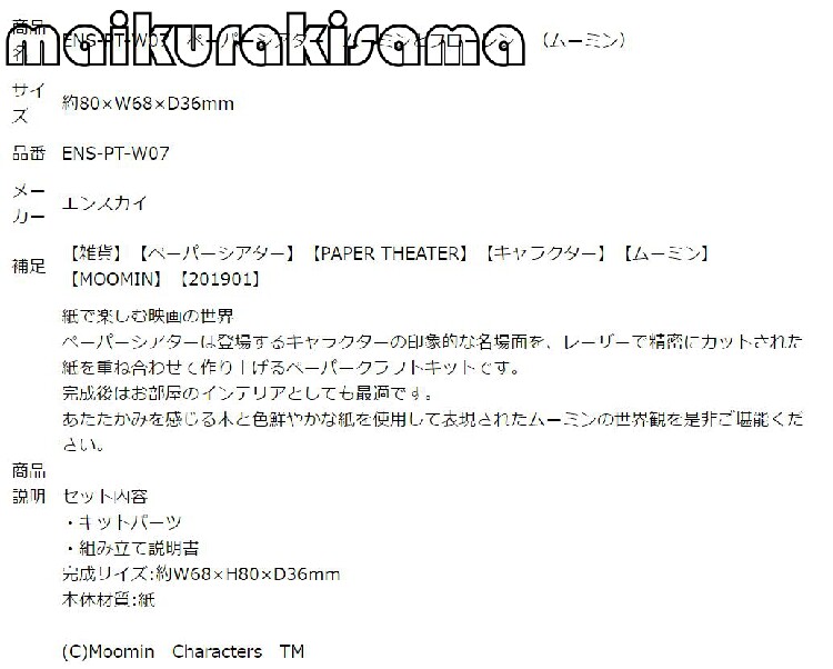 Японский подлинный Энсский Мумин Мумин Бумажный театр бумажный театр Трехмерная модель дерева древесина