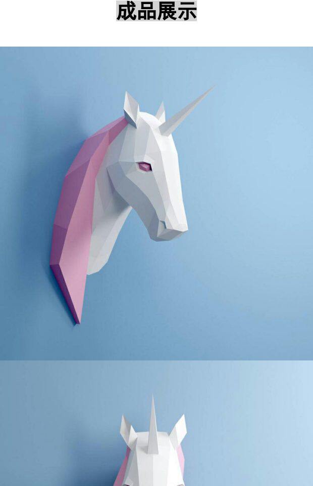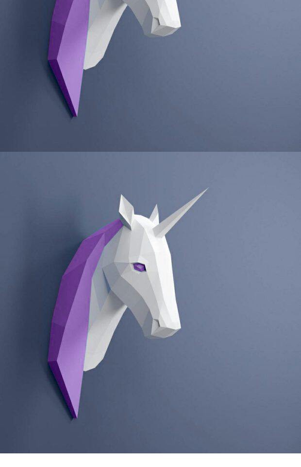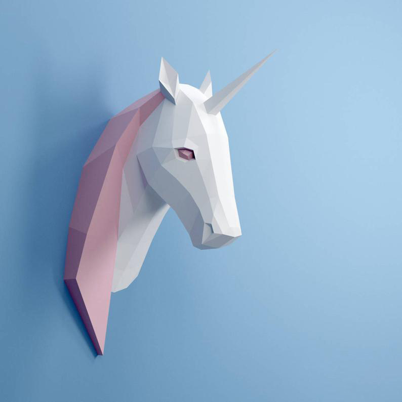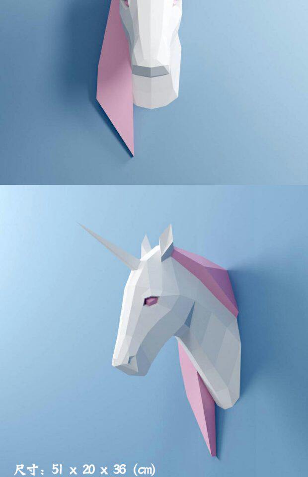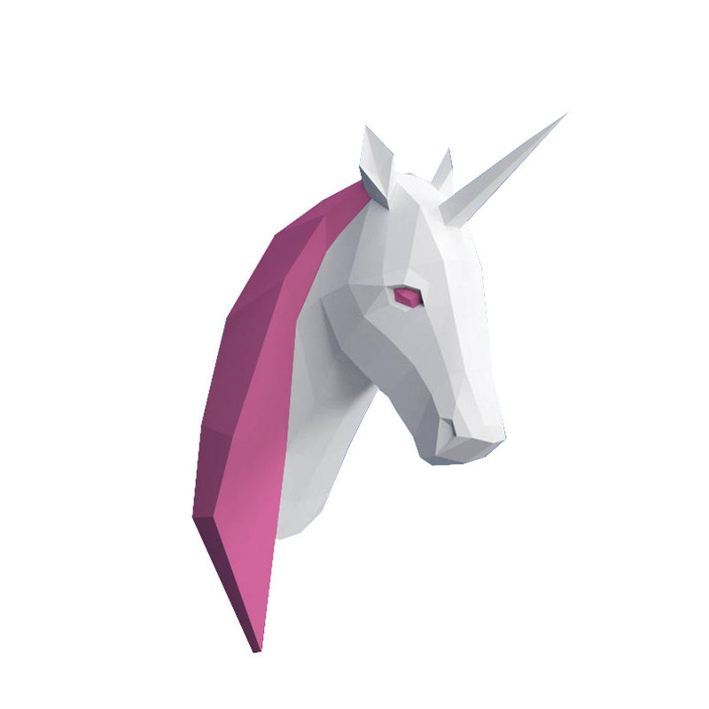 Розовое настенное оригами для спальни, единорог