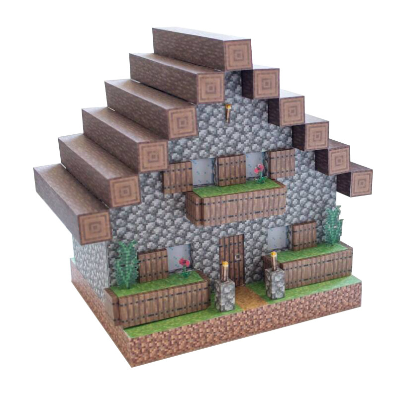 Сельская библиотечная портал сельских жителей, моя мировая магма -блок -модель 3d Трехмерная сцена украшения ручной работы