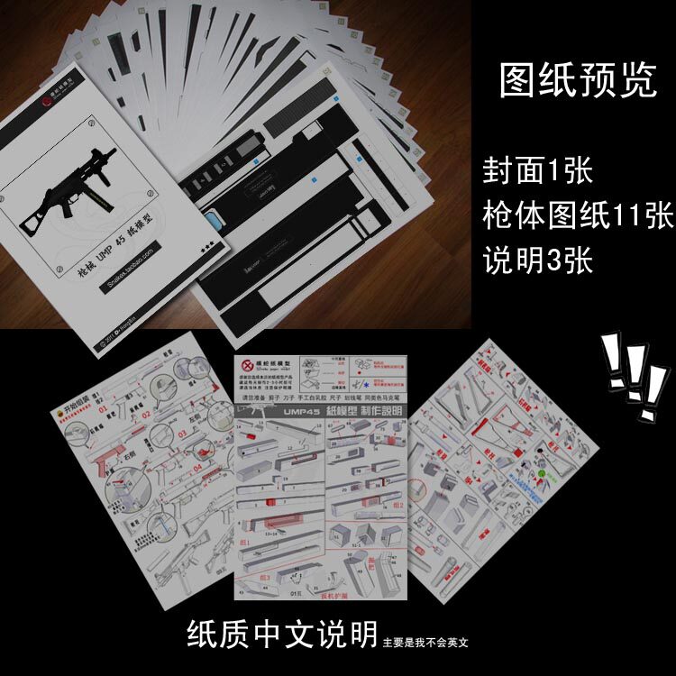 Модель бумажной модели UMP45 Paper Model 3D Трехмерная бумага Классика ручной работы ест курицу CF Jedi Survival CS