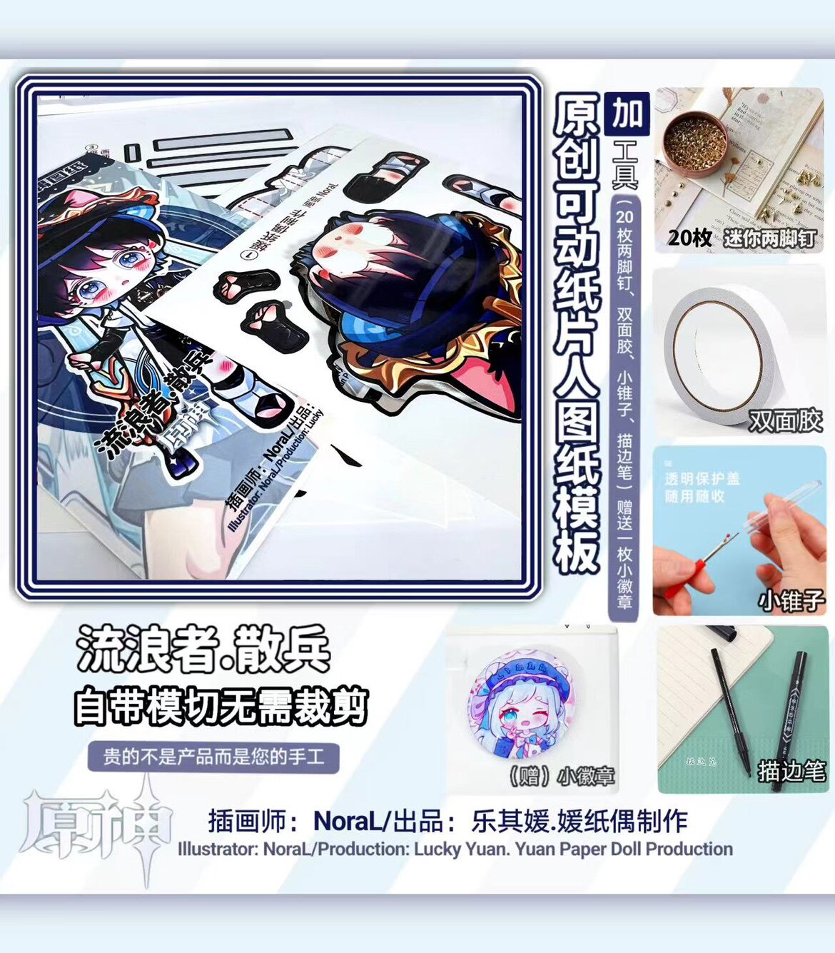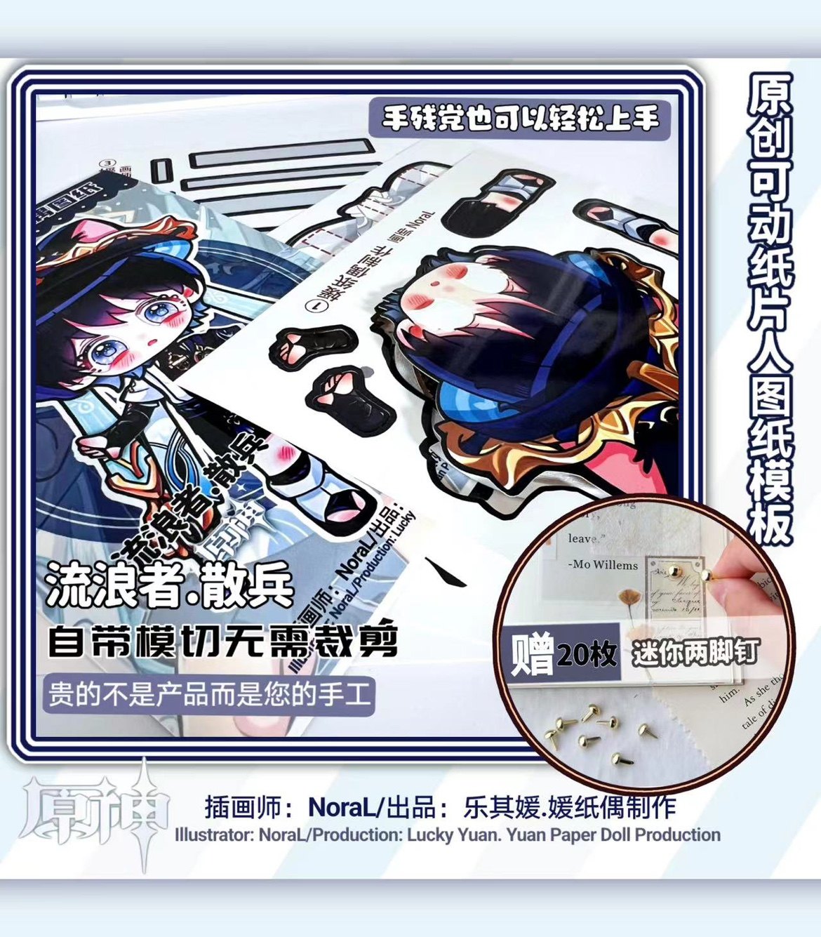 Genshin Impact, подвижный набор материалов, шаблон, не требует вырезания