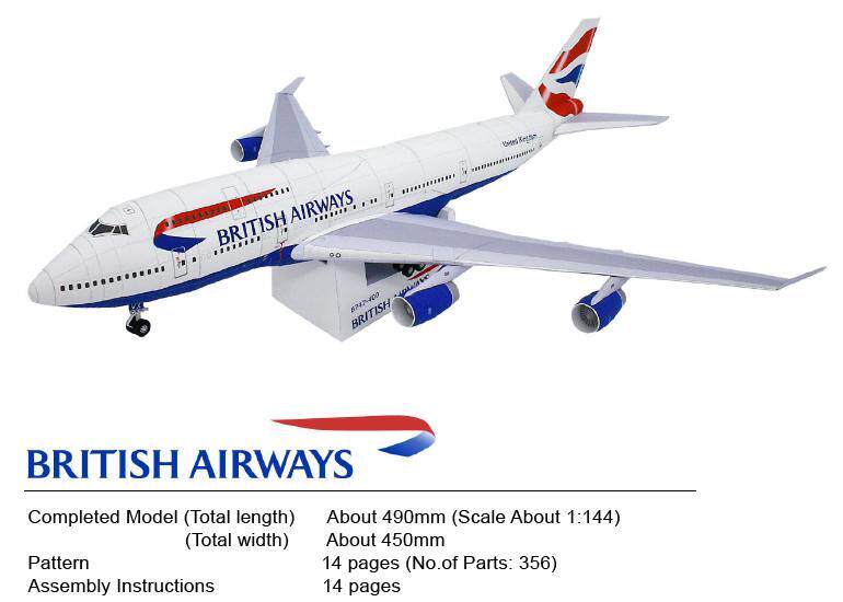 [Медведь] Пассажирские плоско-британские авиакомпании Boeing 747-400 Paper Model