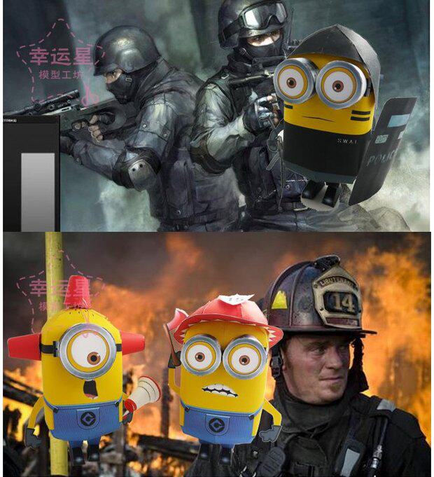 Бумажная модель маленькие желтые люди, плохие парни, презренные, мои маленькие желтые люди крадут молоко, папа, 3D -бумажная модель DIY ручной работы