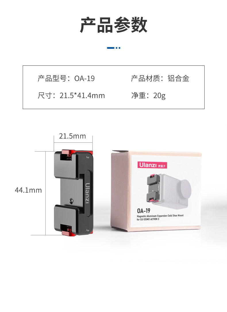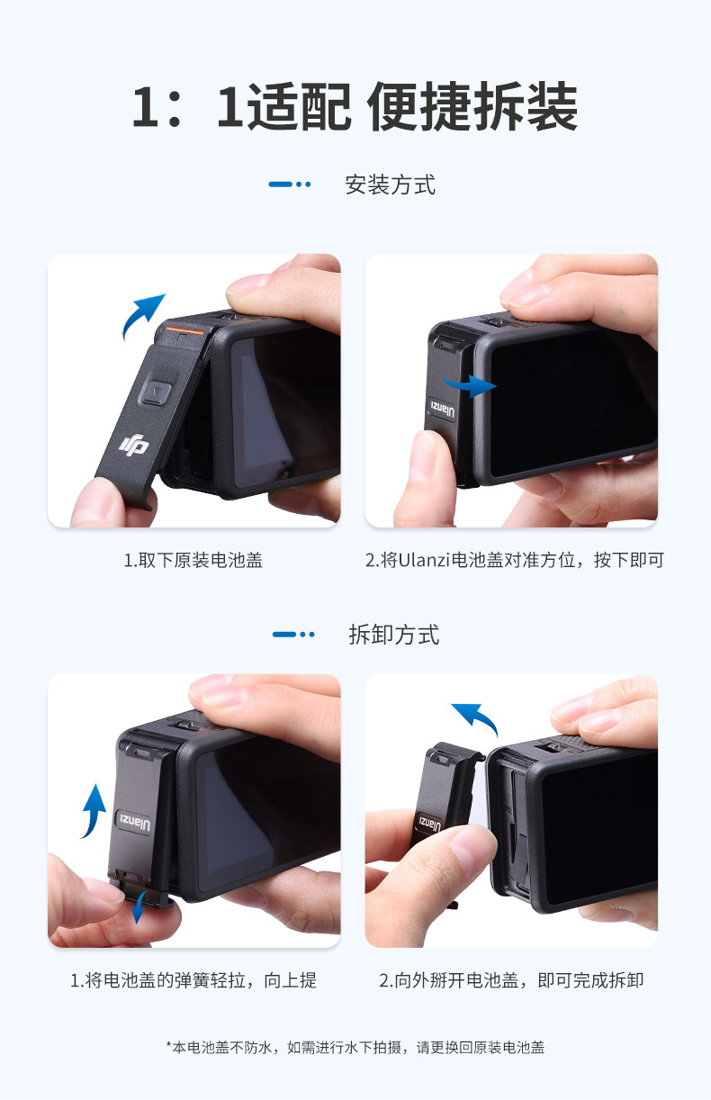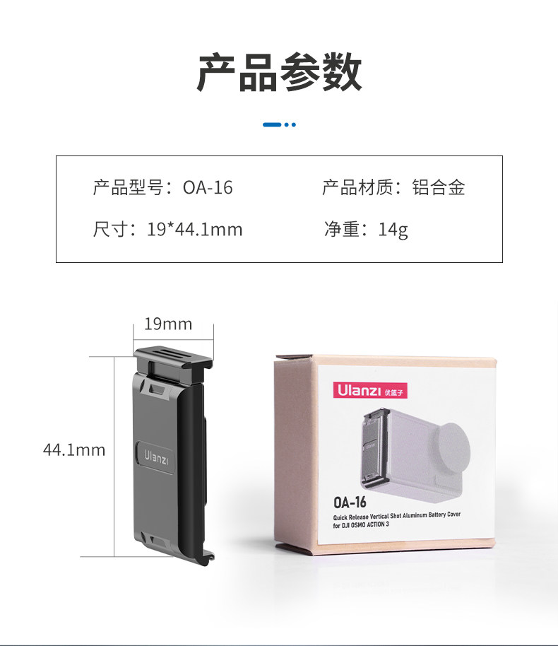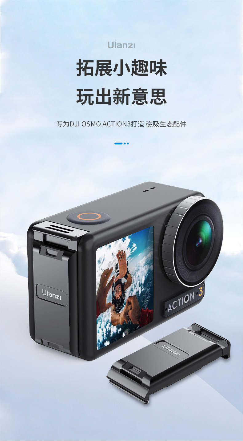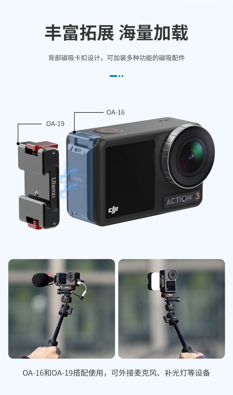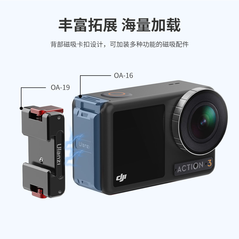 Уланзи Юбин OA-16 DJI Action3 Быстрая разборка батарея, покрывающие металл, расширяйте холодную книгу для ботинок