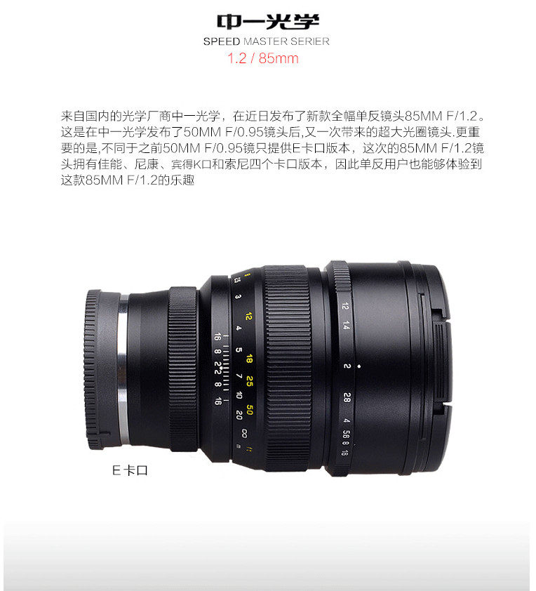 One Optical Speedmaster Series 85mm f1.2 полная линза с большой апертурой