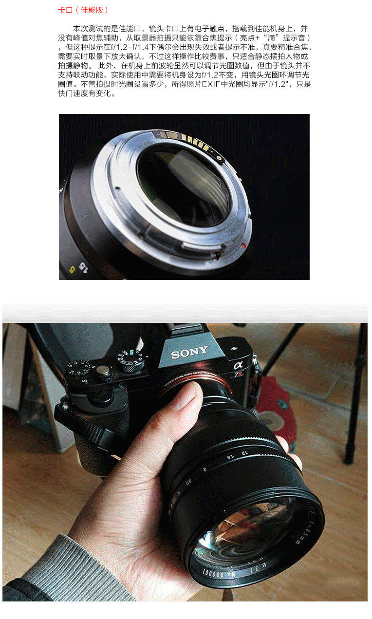 D. Sony Fekou:Родной порт Sony Fe, Без необходимости подключить кольцо, совместимое со всеми портами Fe и Micro Micro Cameras Port.Столбцы, такие как: A7 Series, A72, A7R2, A7M2, A7S2, A6300, A6100 и т. Д.Чистый ручной объектив, доступный на Sony Micro -singleAЛарекMСфотографировать, вы можете использовать егоПик фокусировкииЗумМетод фокусировки.