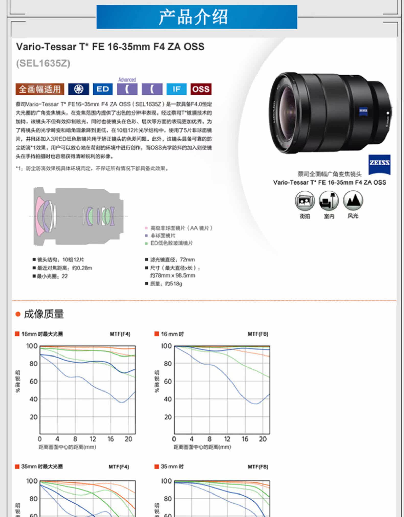 Sony T Fe 16-35 мм F4 Za oss Zeiss Полный формат широкоугольные руины Sel1635Z