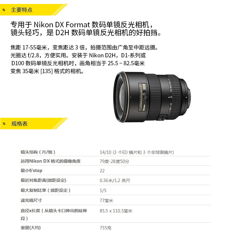 Nikon Nikon Lins AF-S DX 17-55 мм F2.8G ED Classic Bull Head Standard Zoom Lens