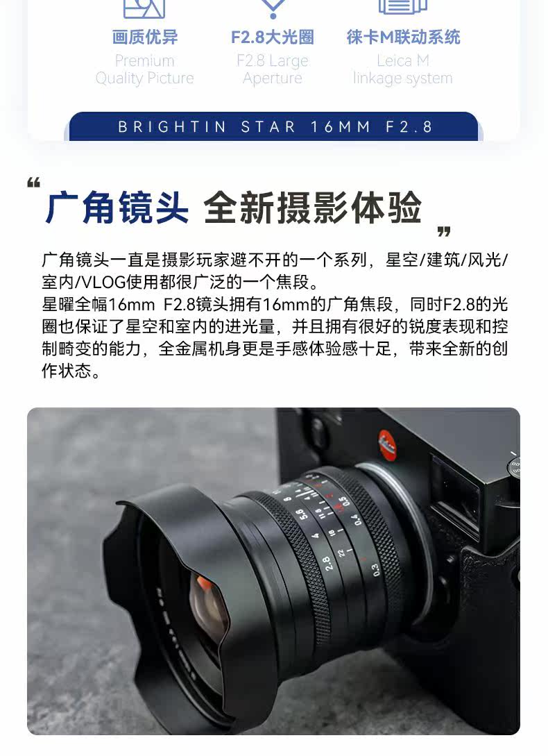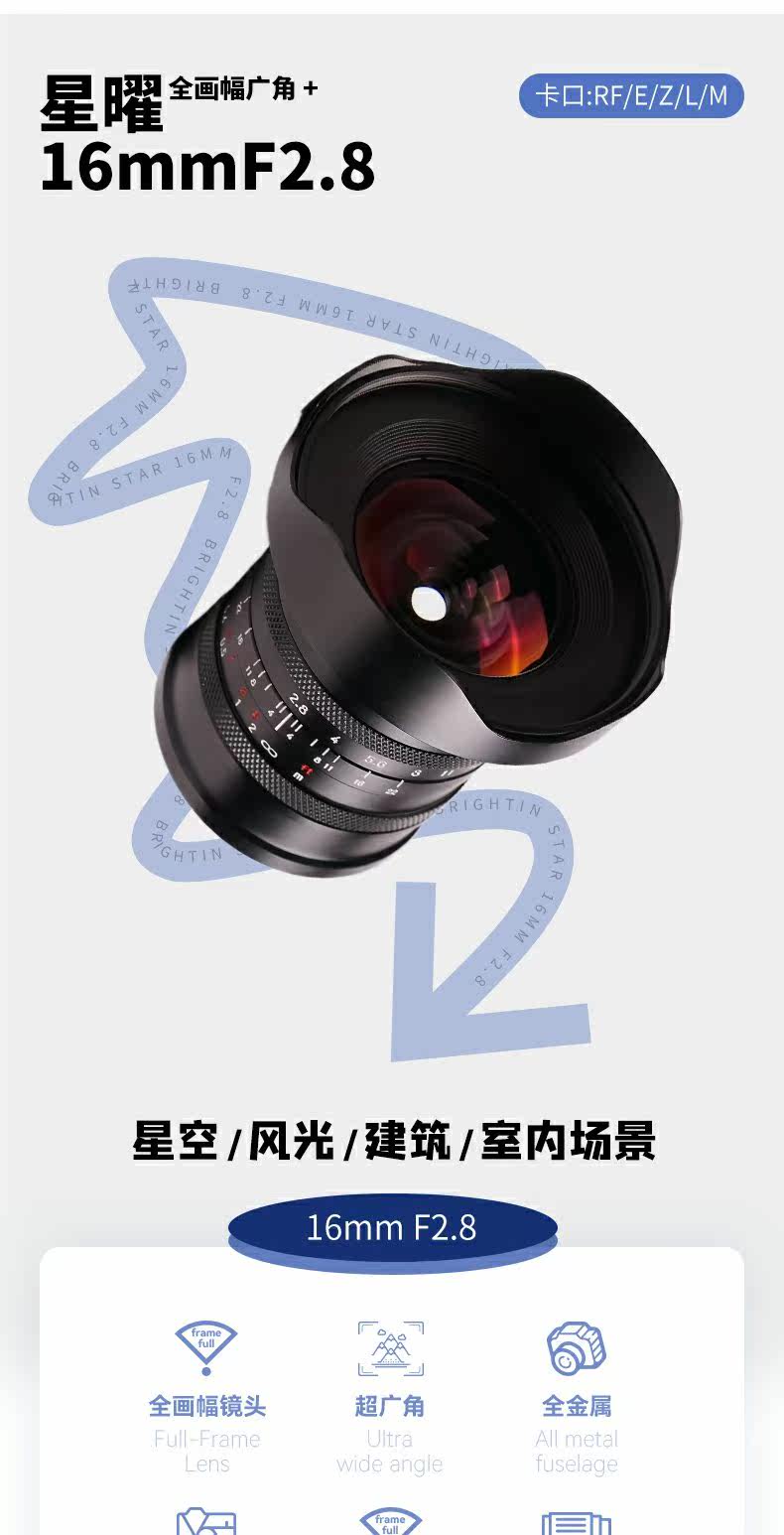 Starry 16mmf2.8 Ultra -wide -angle full -frame фиксировано -фокус микро -одиночный объектив, подходящий для M Sony E Shima L Nikon Z Xingyao