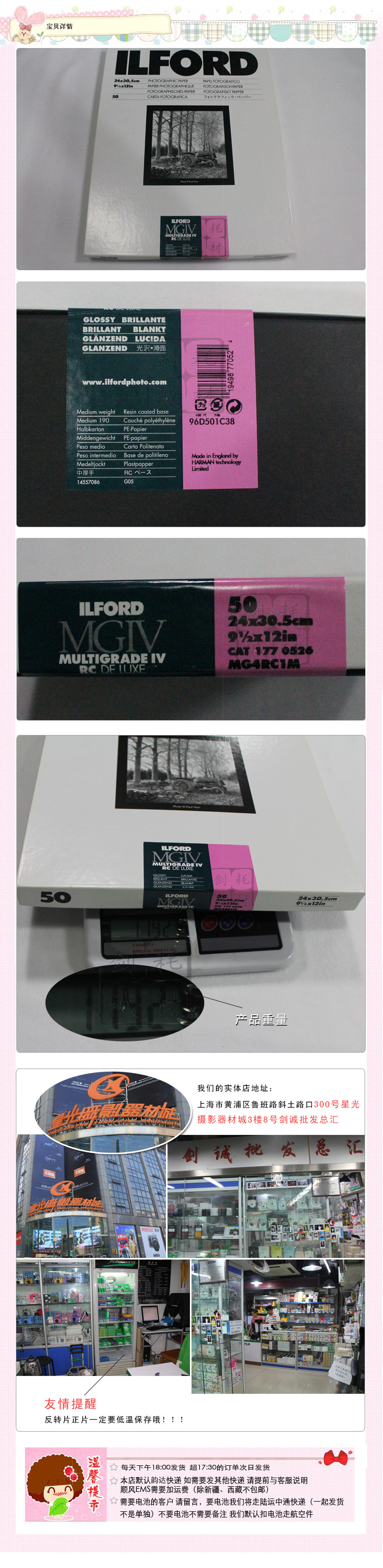 Jiancheng Photography Ilford RC Paper Paper Пластиковый пластик 9,5x12 Черно -белый Zai Zai 50 Фотографии