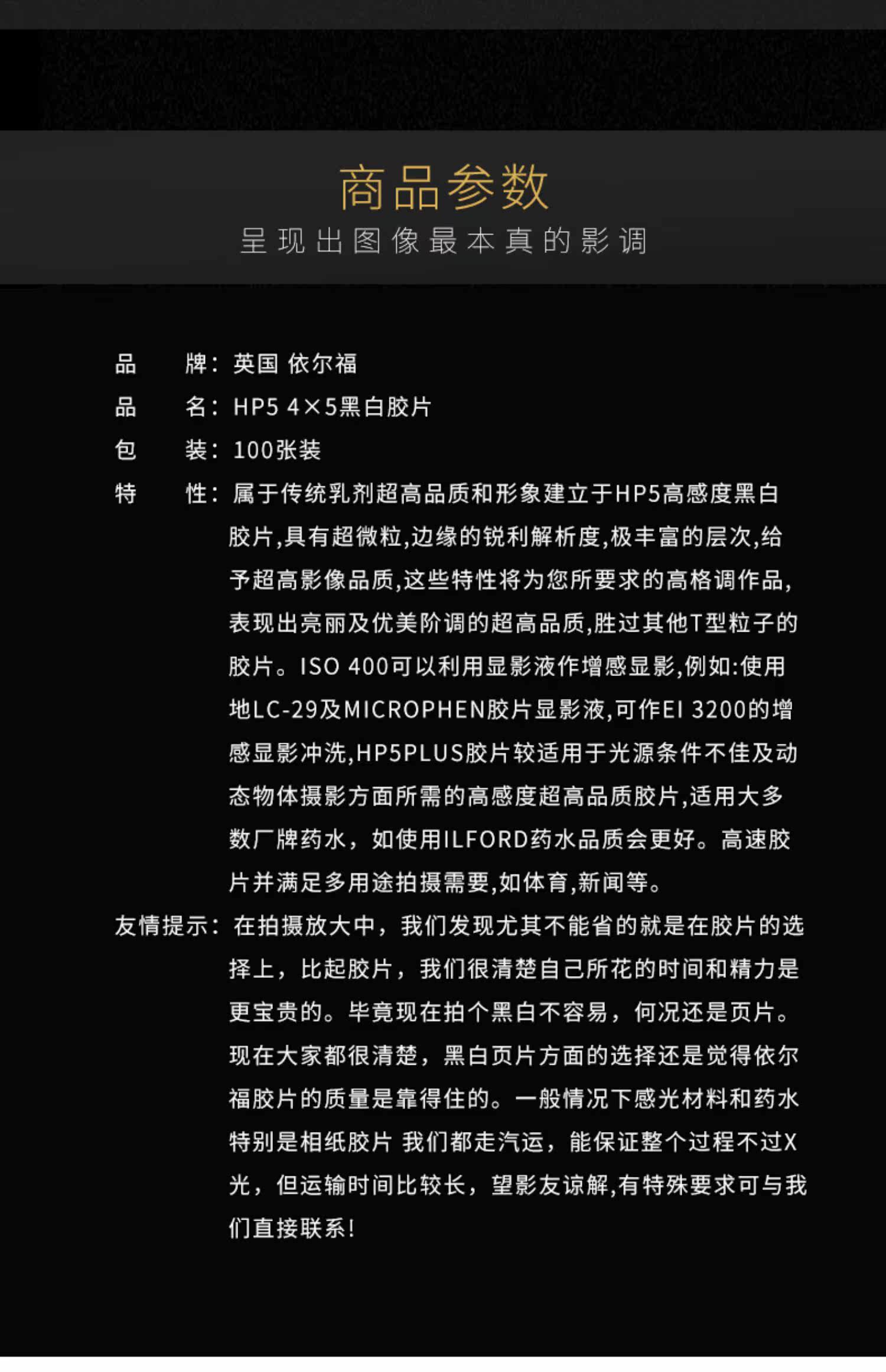 Efford Film HP5 4 × 5 Ilford большой черно -белый фильм 100 листов 2024