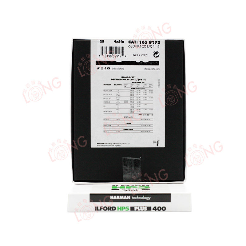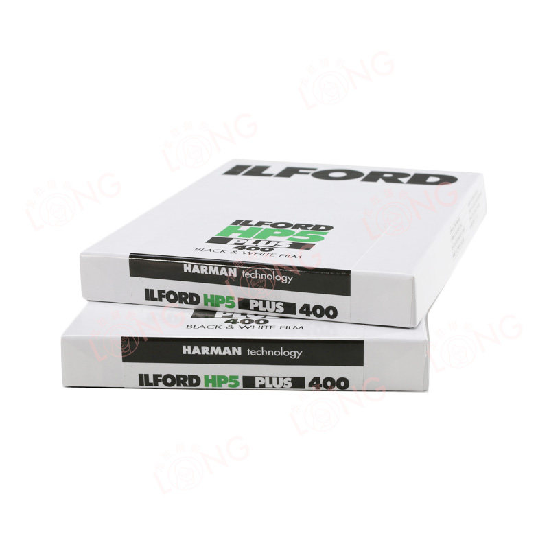 Оригинальный импортный Ilford HP5 400 ° 4 × 5 Черно -белый черно -черно -белый черный черный дважды 25 листов 25 лет в августе