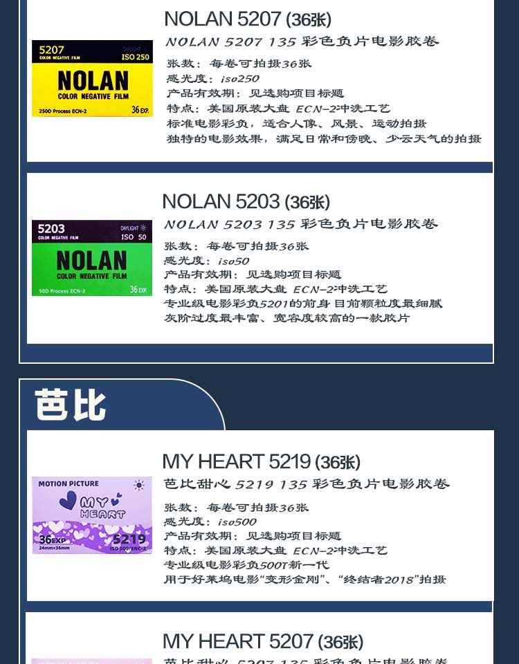 Фильм 5203 5207 5219 5222 50D Хичкок Цвет Черно -белый негативный фильм