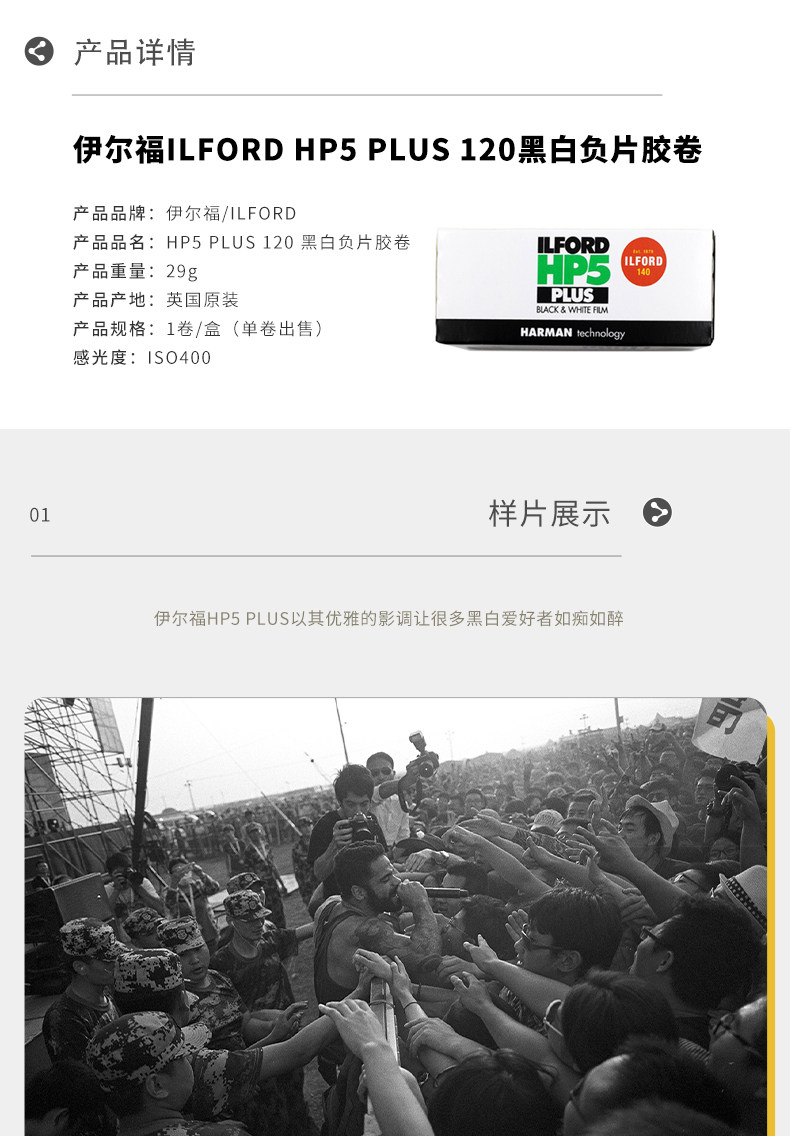 Британский оригинальный Ilford HP5 Professional Plus400 градусов 120 черно -белых фильмов 24 июня