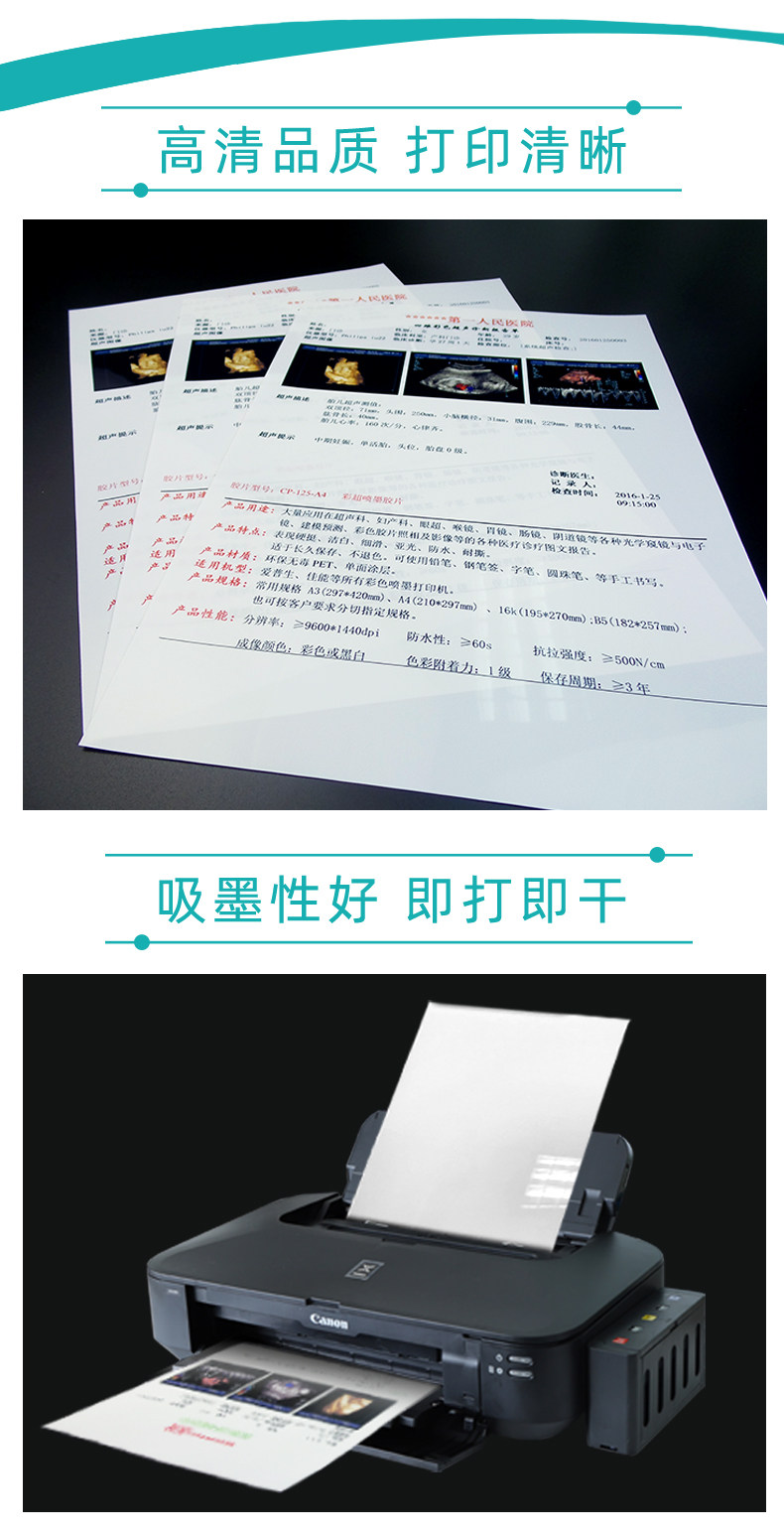 Медицинская пленка A4 Фарфоровое белое распылитель Ультразвук B -ультразвуковая гастроскопия полупрозрачная лазерная пленка.