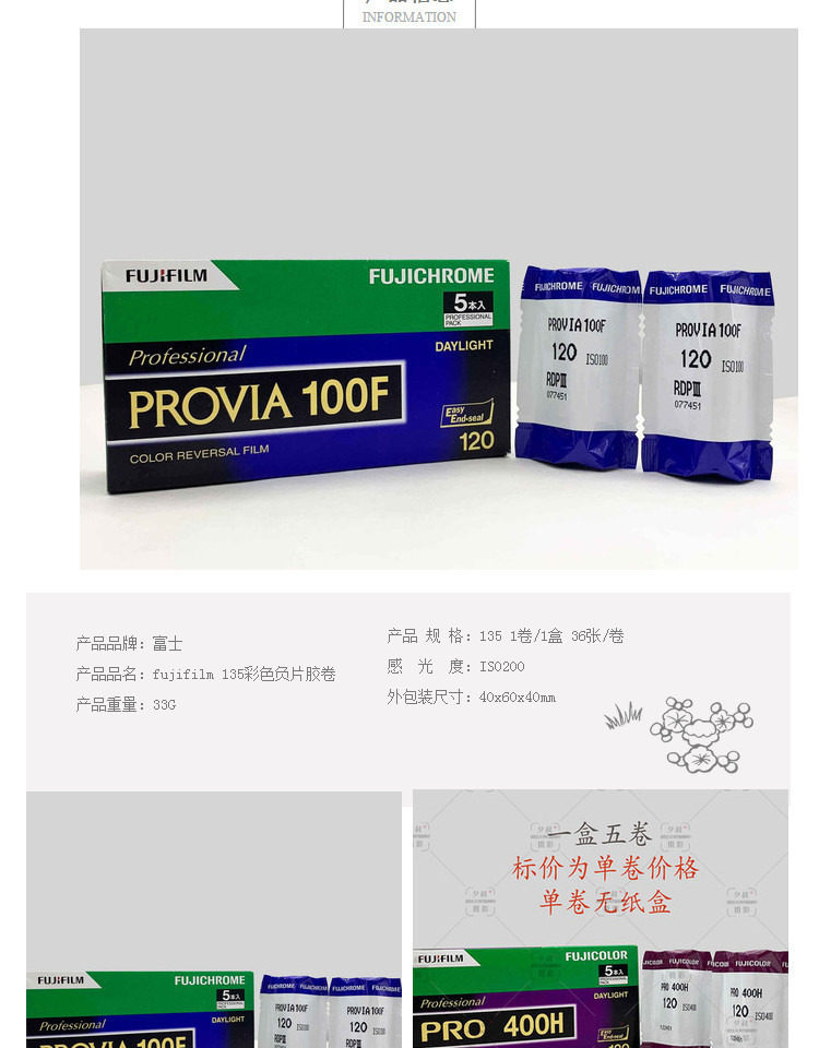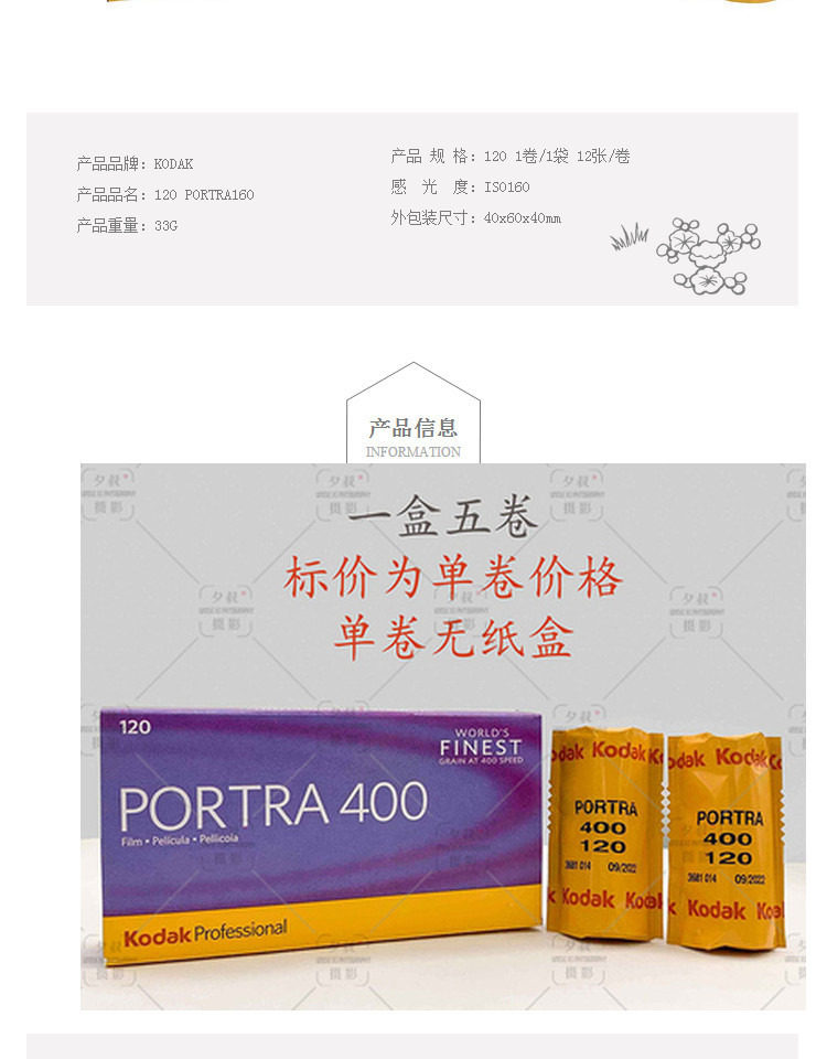 120 Профессиональный цвет реверсийного фильма Fita Kodak Черно -белый фильм Rolling Titan Portra400 Prinse