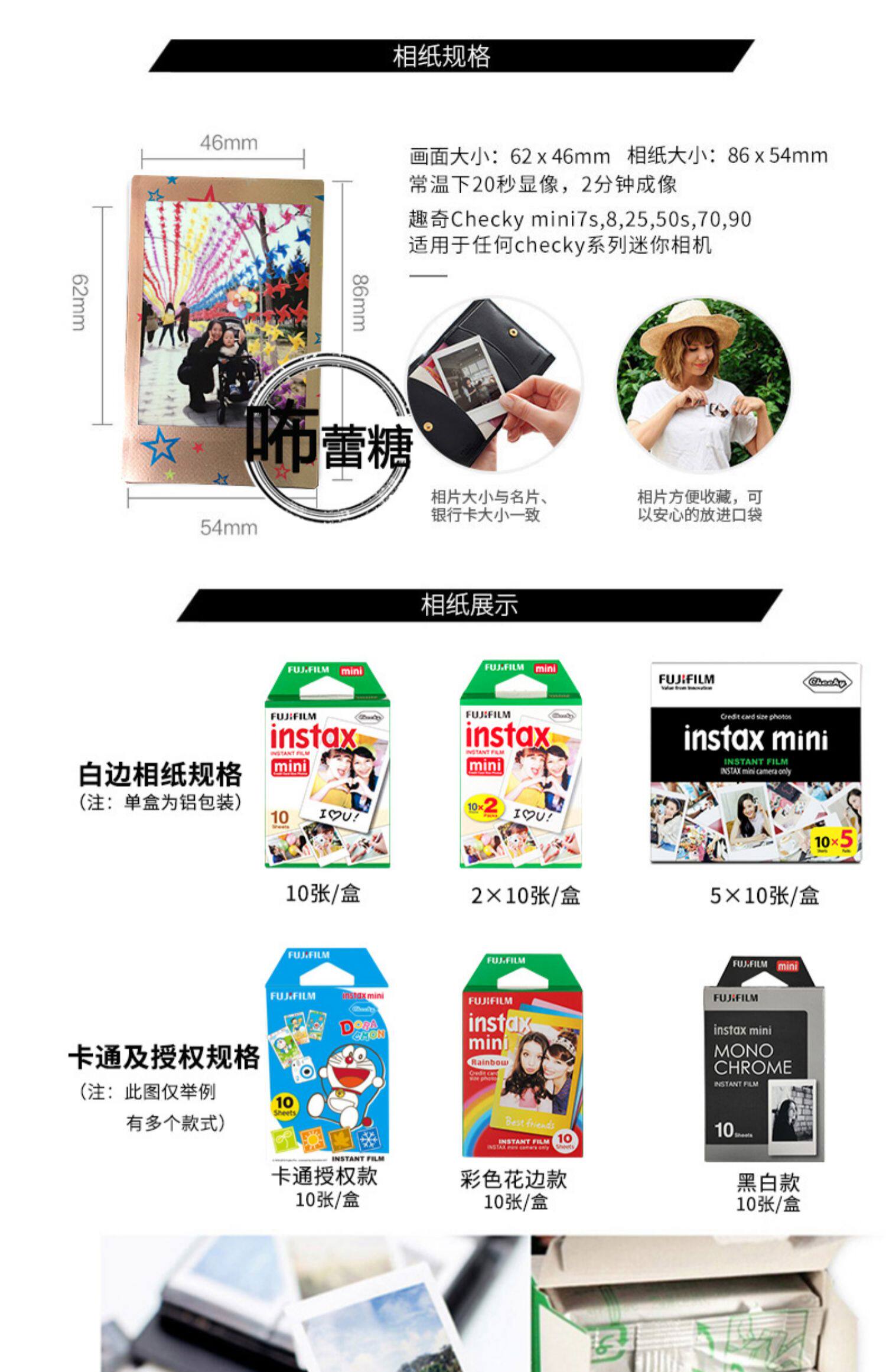 Fuji берет пленку фото мультипликационного цвета белая сторона mini8/9/7/1/40/90 мини -фотобумаги с тремя дюймами.