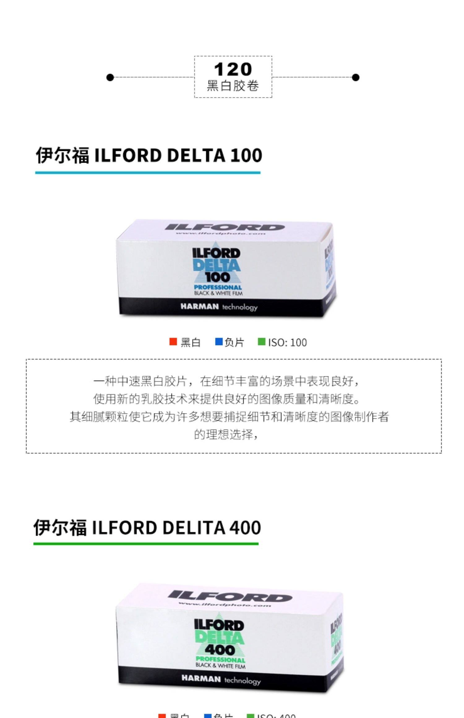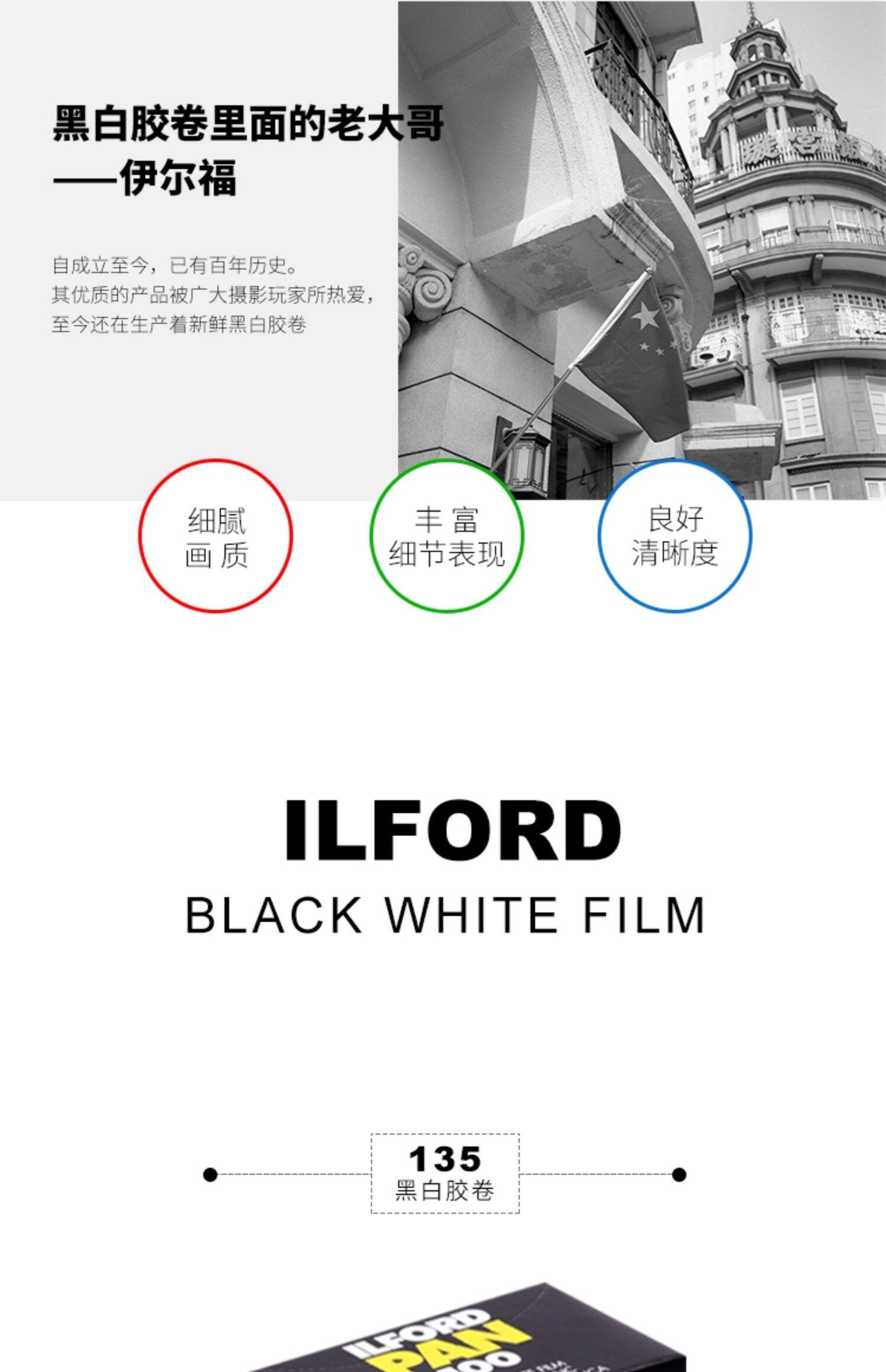 120/135 Ilford Pan100 Британский черно -белый фильм HP5/FP4/Kentmere Kay