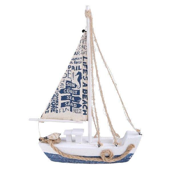 Симпатичный декор для лодки: деревянная парусная лодка для Sky Blue, белый с акцентами декора, с кабельным, раковином и холстом.