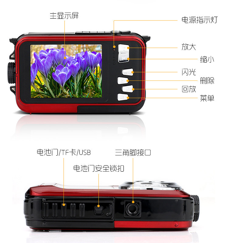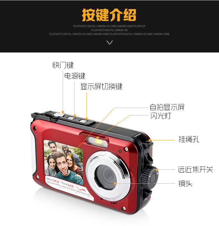 Подлинная 24 -мегапиксельная двукратная водонепроницаемая селфи цифровая камера HD Mini Diving Camera Motion DV