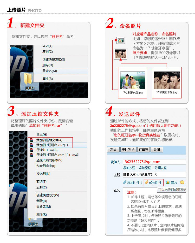 4. Если у вас есть особые требования к обработке фотографий, укажите это в названии файла и свяжитесь с нами.