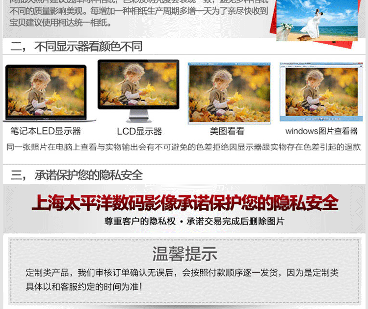 отвечать:Печатная пара тихоокеанского изображения сделает простую модификацию цвета на каждой из ваших фотографий, в основном регулировка цвета, оттенка и т. Д.так что Улучшите эффект отпечатки фото и исправить некоторые сожаления во время стрельбы.В то же время, общая фотография фото печати будет вырезана из -за неуместной пропорции, мы по умолчаниюРезка, резка, Фотография, которое не может быть вырезано, пусто. |