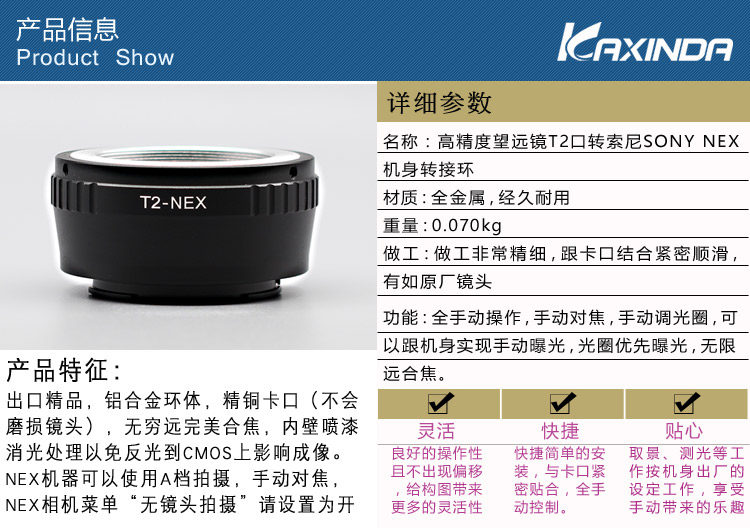 Телескоп T T2-NEX M42 x 0,75 винта к Sony Nex Nex3 Nex5 Adapter Ring