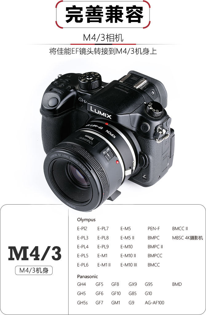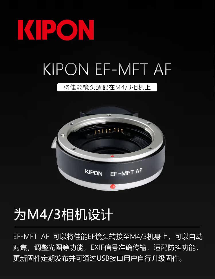 Адаптер линзы Kipon Canon EF M4/3 Адаптер тела EF Lens Lens AutoFocus Adapter Rigtable Aperture
