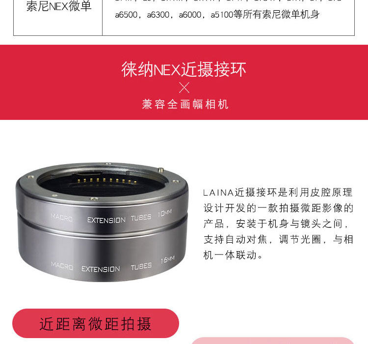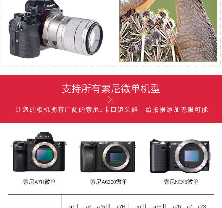 La -Sony Sony Ekou Nex A7 7AR2 Fe Микро одно -специфическое -в -ансистесное кольцо.