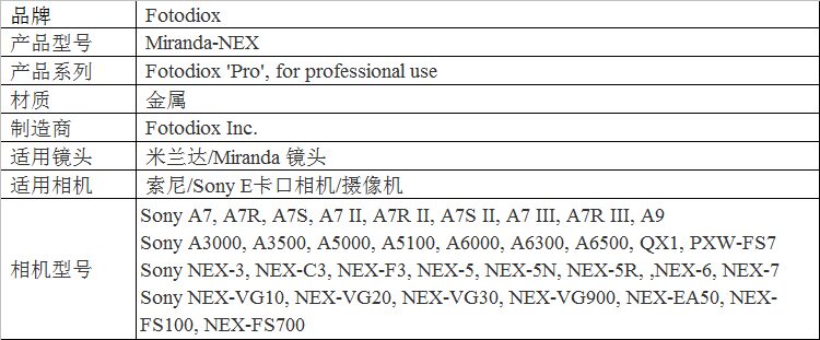 Американская линза Fotodiox Miranda-Nex Miranda To Sony Sony E-Mount A7 Adapter