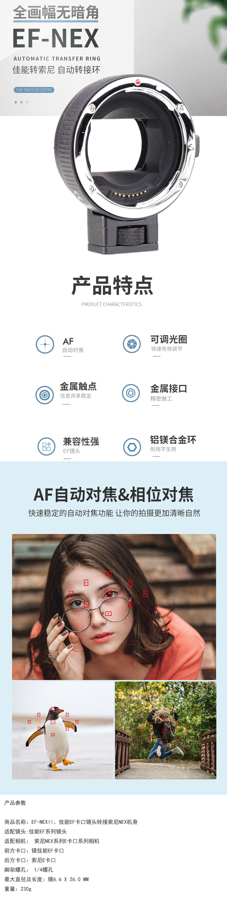 EF-NEX II II Адаптер линзы второго поколения Sony E-Port Полностью автоматический фокус регулируемый апертуру Электронный адаптер кольцо