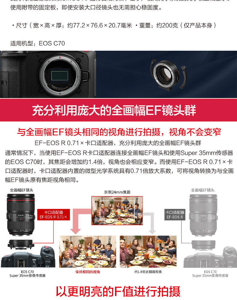 Canon/Canon EF-EOS R 0,71 × Оригинальный адаптер Broast EOS C70 ROTOR EF