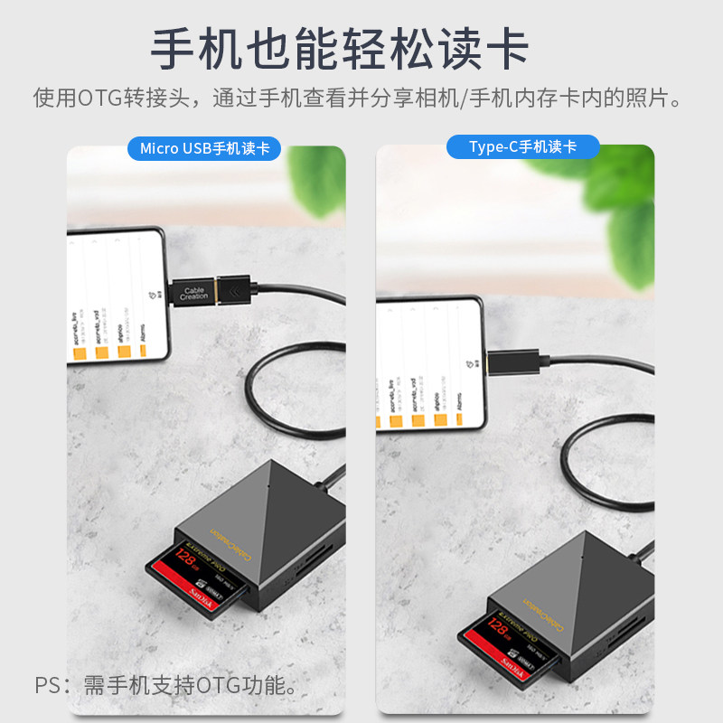 - Сборная карта сплава Type-C 2-в-1 карта для чтения (10см-чернокожие подходит для карты SD/TF)